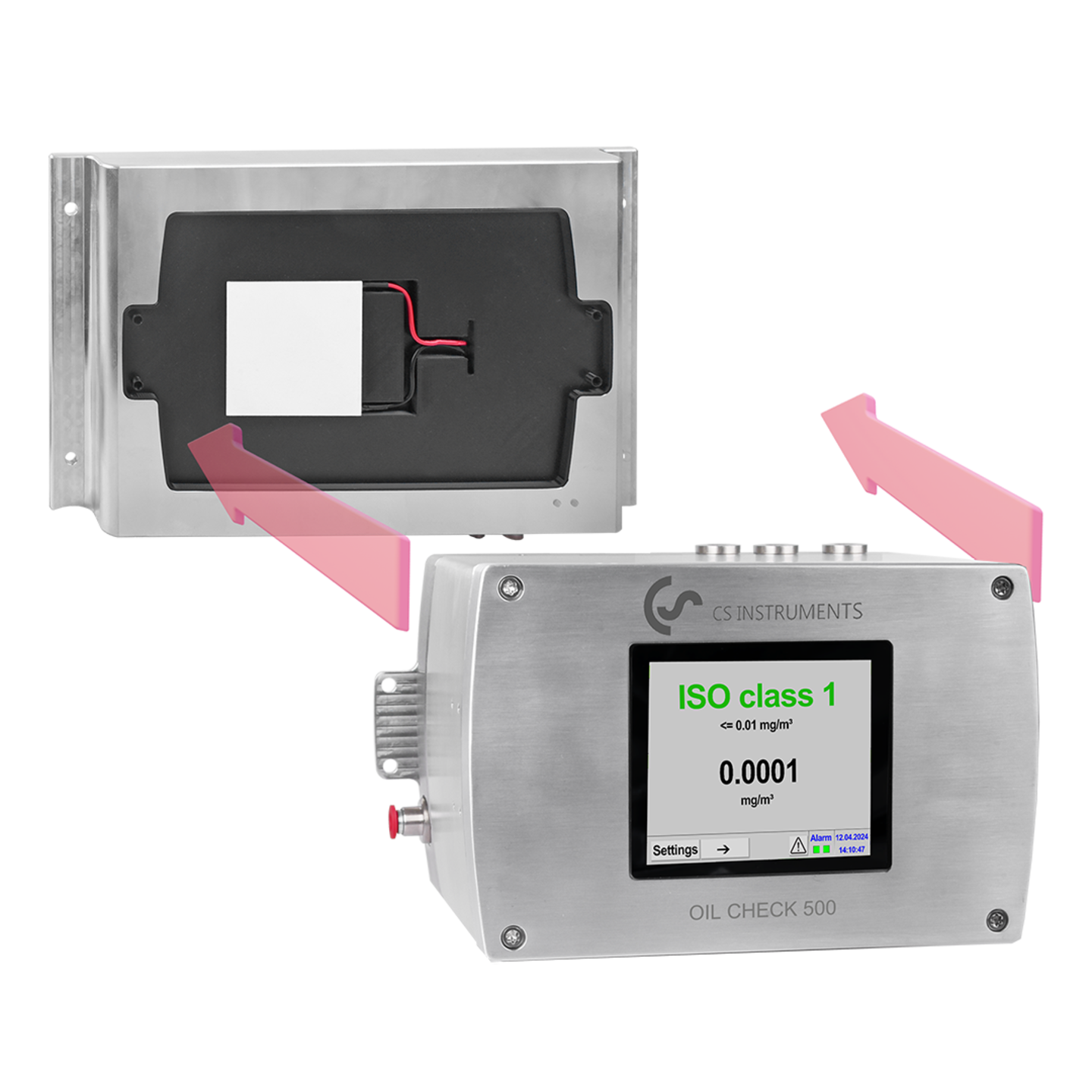 Durch das innovative Validierungsverfahren “Forced Pressure Variation” erzeugt der OIL CHECK 500 geräteintern Verdichtungsstufen im Prüfgas zur Identifikation von schleichenden Konzentrationsanstiegen zum Beispiel durch Filtersättigung. Mit Hilfe dieses von CS INSTRUMENTS geschützten Verfahrens können alterungs- oder verschmutzungsbedingte Anteile im Messsignal, insbesondere Langzeitdriften, kompensiert werden. Keine Verschleißteile wie z. B. Aktivkohlefilter für die Erzeugung der Null-Luft notwendig. Das Ergebnis ist eine wartungsarme und langzeitstabile Messung.